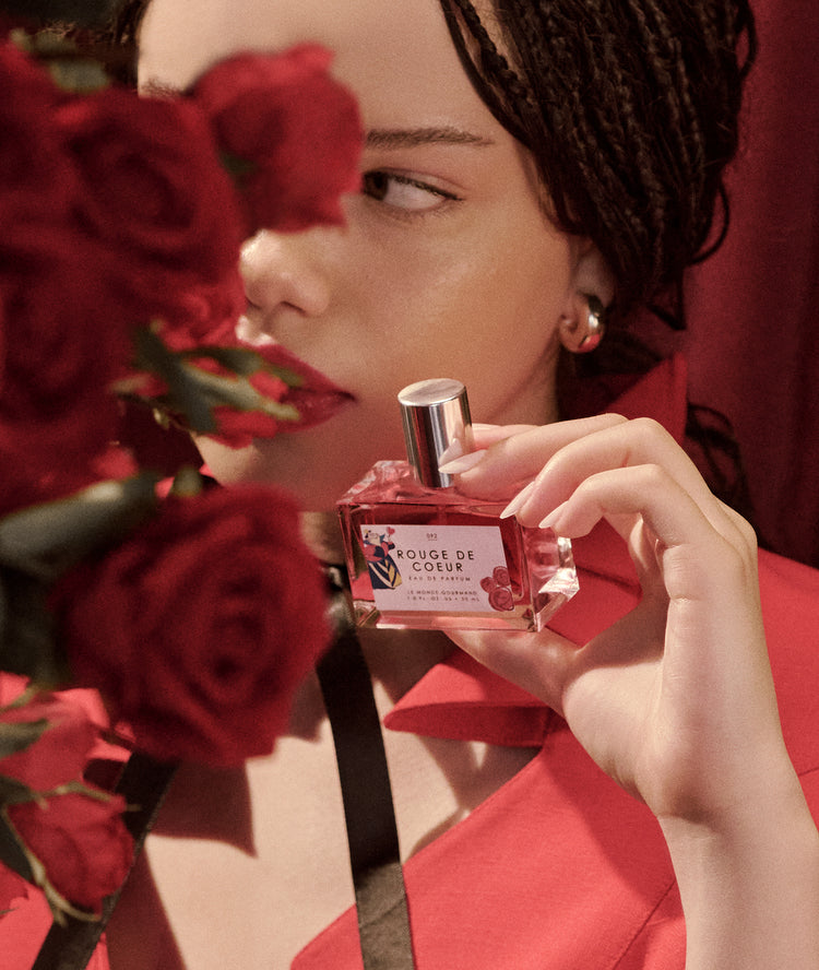 Rouge de Coeur paints the roses red. Sparked by citrus and pink pepper, it blooms with demask rose, followed by a trail of amber woods. Powerfully potent, it commands attention and leaves behind a scent you won’t soon forget.