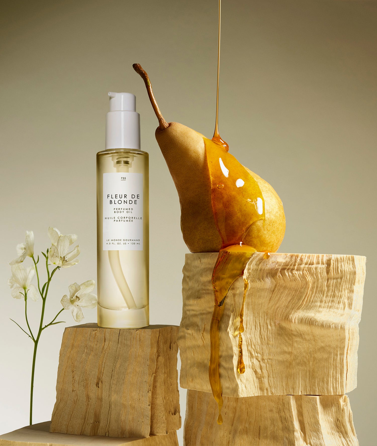 Soft, warm, and effortlessly cool—like you, just a little sweeter. Fleur de Blonde Body Oil is your new everyday signature, the kind of scent that gets better every time you wear it. With notes of Radiant Pear Blossom, Ambrette, and Cashmere Musk, this indulgent oil wraps around you with laid-back sophistication while nourishing the skin and leaving a soft, luminous finish.