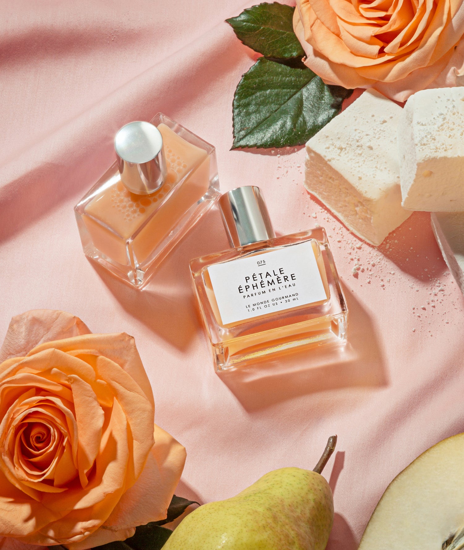 The secret garden, revealed. In a hidden corner of the world, petals unfurl, releasing whispers of White Peaches, Rose and Orange Blossom. As their delicate fragrance fades a soft, alluring trace of Fluffy Marshmallow and Amber appears. Pétale Éphémère Eau de Parfum is like capturing a fleeting moment from the most whimsical daydream