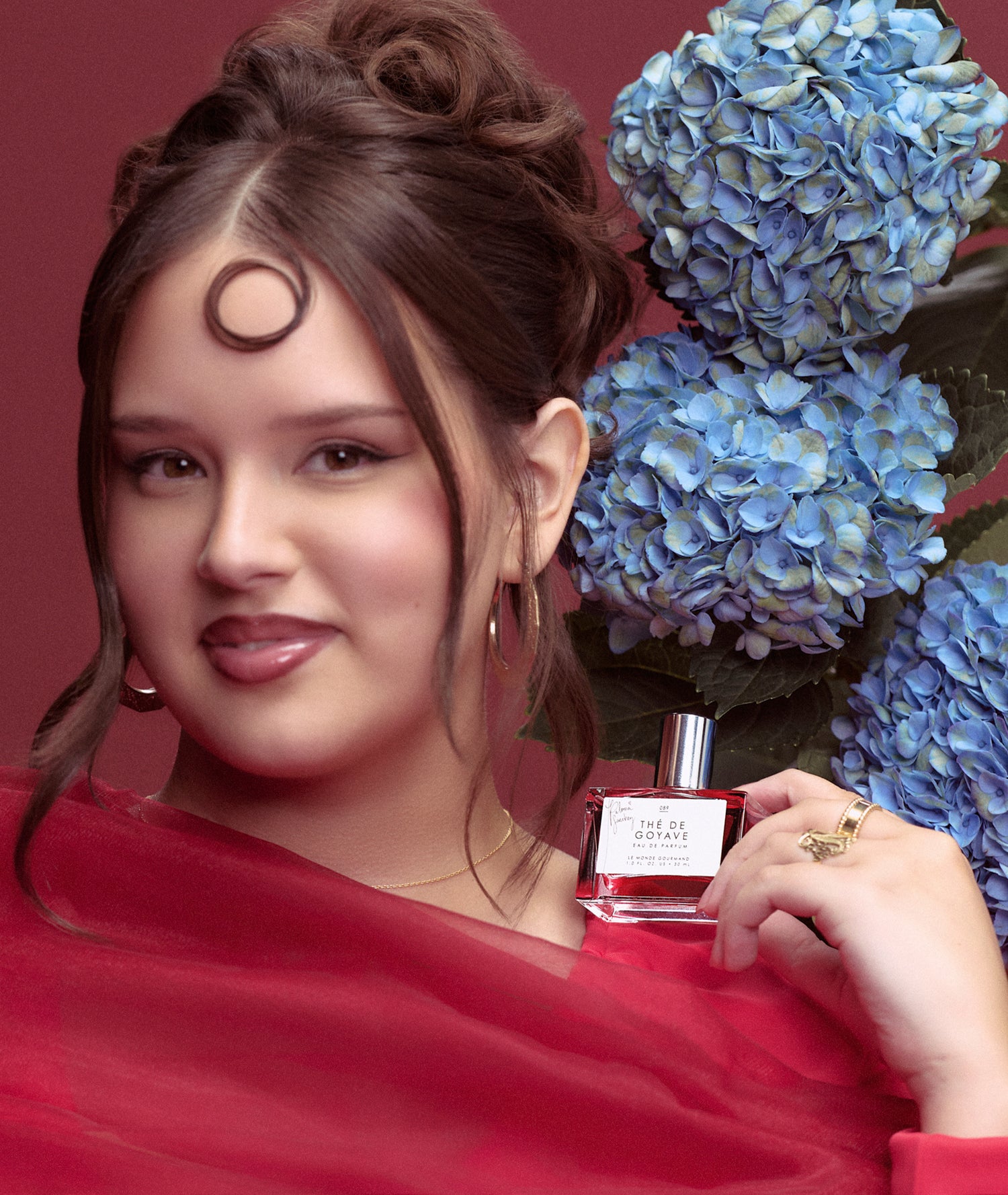 An intimate reflection of its muse, Paloma’s fruity floral tells a story of culture and connection. Thé de Goyave brings her Mexican heritage to life through a radiant blend of bright guava, delicate white tea, and warm orcanox. It’s an olfactive celebration of her world, capturing the beauty of togetherness in every note.